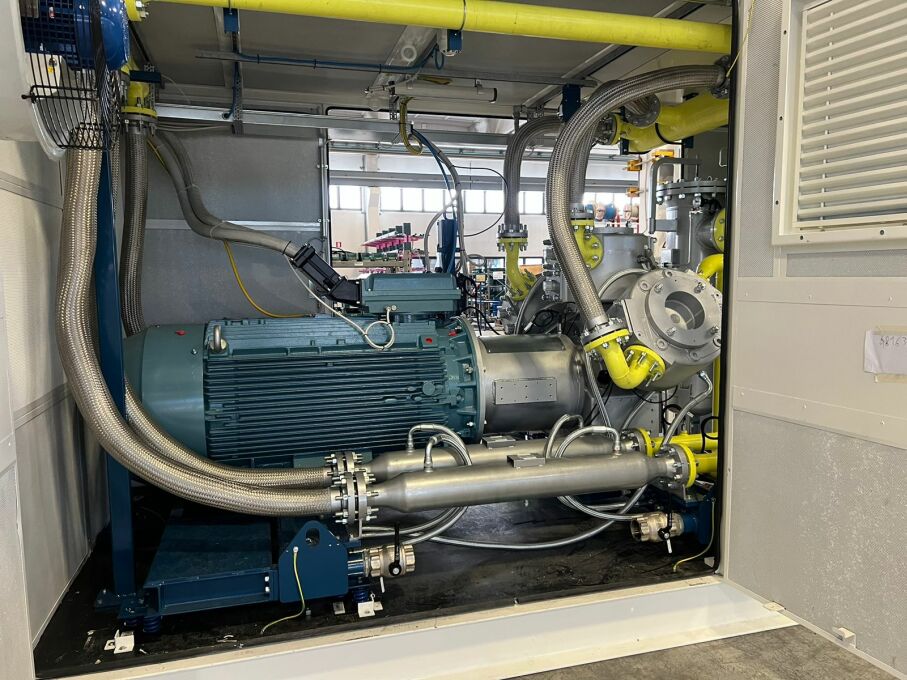 Un patín presentado por un compresor impulsado por EM y un sistema de enfriamiento de gas en cada etapa del compresor.
